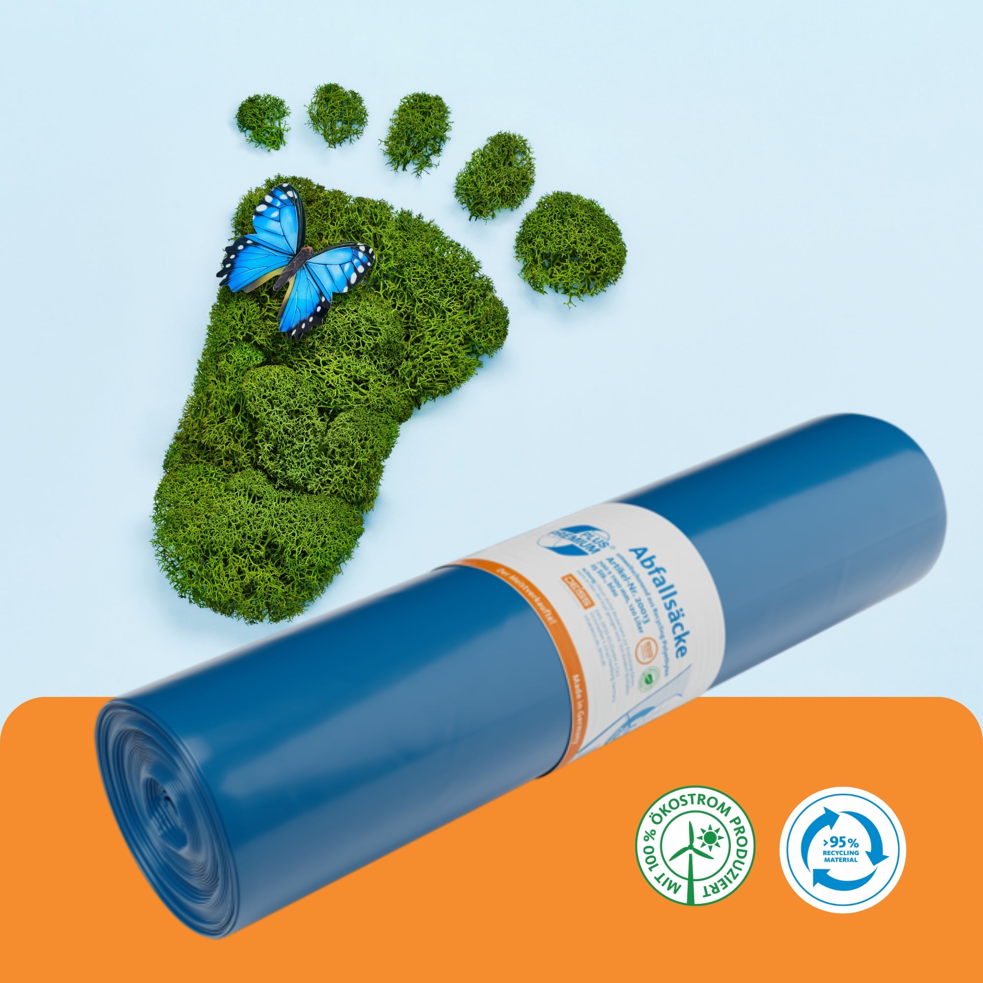 PREMIUM PLUS Abfallsäcke kombinieren hohe Reiß- und Durchstoßfestigkeit mit nachhaltiger Materialnutzung. Moderne Hochleistungspolymere ermöglichen eine reduzierte Wandstärke bei gleichbleibender Qualität. Die Produktion in Deutschland, kurze Transportwege und ein hoher Recyclinganteil verbessern die CO₂-Bilanz und machen PREMIUM PLUS zur idealen Lösung für anspruchsvolle, professionelle Anwendungen.